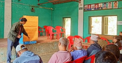 The three-day training program, organized at Bungdal Community Forest from November 16 to 18, 2024, was attended by 25 participants including members of Bungdal Community Forest. The program aimed to enhance participants’ knowledge and skills in silvicultural operations through a combination of theoretical and practical sessions. The sessions were facilitated by Mr. Sanjeev Bhattarai and Dr. Yogendra Yadav, who provided their expertise in silviculture and sustainable forest management practices. The program was started by providing an overview of the three-day program agenda, highlighting the objectives and key activities planned. The general introduction and overview of the program ensured participants were well-informed about the purpose and structure of the training, creating a smooth flow for the sessions and fostering
