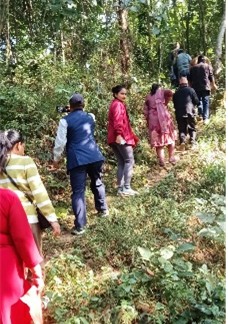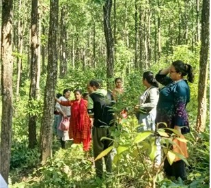 On the second day, the program began with a briefing session where the facilitator outlined the planned activities. Participants were divided into four groups, each assigned specific tasks to ensure systematic learning. During their visit to the Piple Pokhara Community Forest, participants undertook practical tasks such as weeding to enhance forest health, thinning to reduce overcrowding, and pruning to promote the growth of healthier trees.