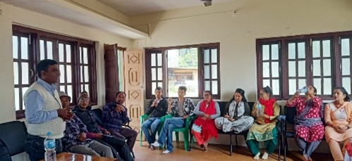 The final day of the training program began with a short visit to the Rapti Division Office, where Mr. Suresh Gupta, Assistant Forest Officer (AFO), delivered a briefing on key initiatives and ongoing efforts in the region’s forest management. Following this, the participants proceeded to the Dipad Community Forest (CF) for an exposure visit.Upon arrival, Dammar Bahadur Moktan, the Chairperson of Dipad CF welcomed the participants and provided an in-depth briefing on the history of CF including its area, benefitted households, number of male and female, etc. along with its challenges during previous days, and achievements at present context. He explained that Dipad CF was established in 2063 B.S. and covers an area of 170.89 hectares.The chairperson also shared a pivotal incident from 2078 B.S., when a devastating windstorm caused significant damage, toppling nearly 900 trees. Initially met with disbelief, a ministerial investigation confirmed the windstorm as the true cause of the destruction.