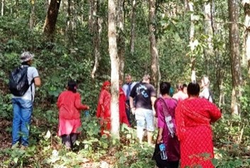 On the second day, the program commenced with a briefing session where the facilitator explained the planned activities for the day. Participants were divided into four groups, each tasked with specific responsibilities to ensure a systematic and productive experience. Upon arriving at their respective Community Forests (CFs), the participants initially engaged in practical tasks such as weeding designated areas to improve forest health. This was followed by thinning and pruning activities, where participants learned to remove overcrowded and unhealthy trees to enhance the growth of remaining trees.